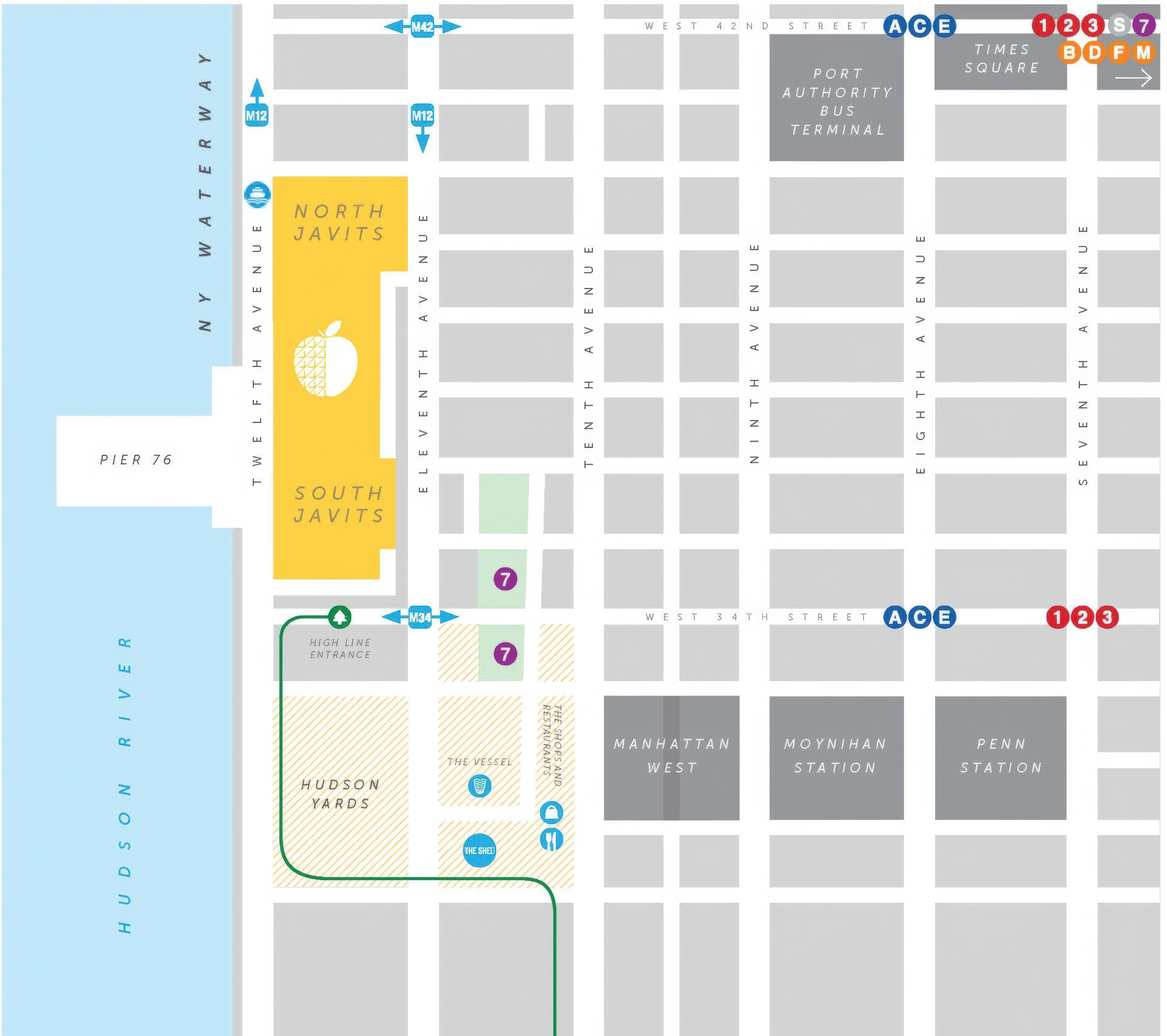 If you’re coming by car or truck, virtually all roads lead to the Javits Center. Plus, there’s plenty of off-site parking within walking distance of the iconic facility. And if you’re looking to burn some calories while blazing a trail to our front door, take advantage of Citi Bike, New York’s new bike sharing system. The NY Waterway is also a convenient and quick way to get to the Javits Center from across the Hudson River, and only one block from the Javits Center.
